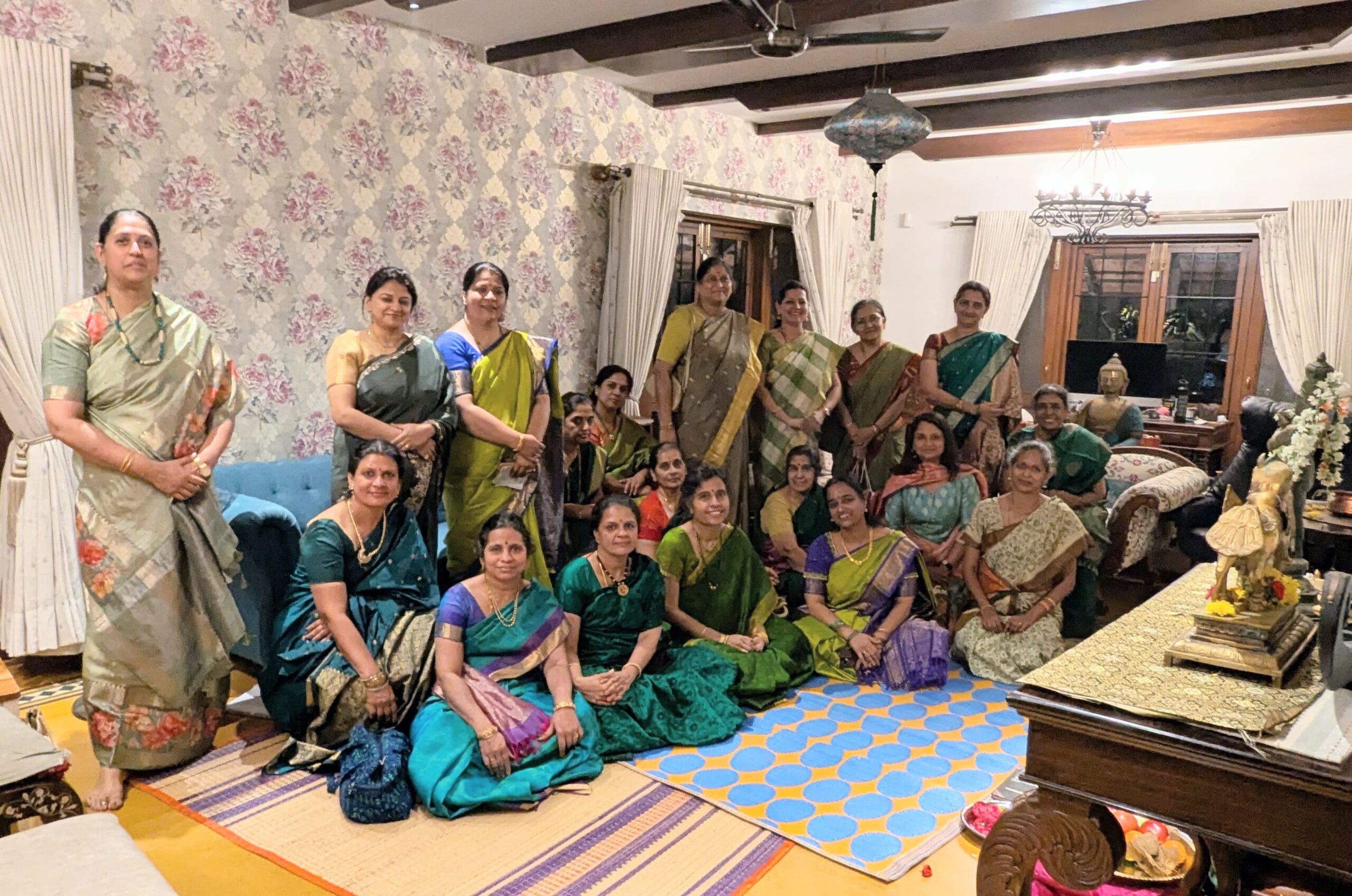 But ask any lady who attends golu/chanting of Devi’s names at anyone’s home, the spirit of unity and belonging that comes with wearing similar coloured sarees on the Navaratri days is undeniable. Singing Devi’s praises in unison, sharing the prasadam and the blissful feeling of oneness that pervades the air is something to be experienced.
